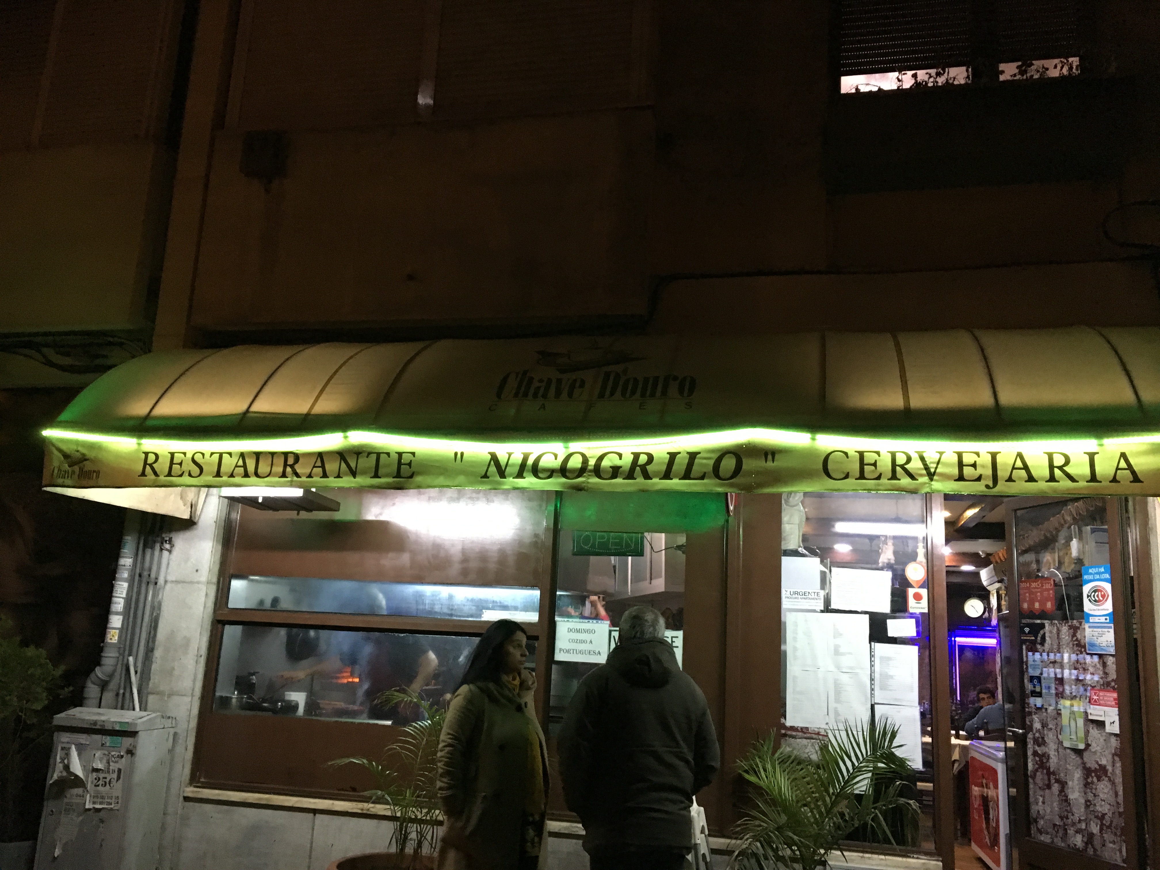 She sent us to a little Portuguese restaurant called “Nico’s” a little neighborhood restaurant. It was a five-minute walk away. From the outside, it looked like a sketchy convenience store, but we peeked inside, past the exterior and could see nice tables of diners inside. We walked in and were guided to a table. The waitress, a lovely, young Ukranian woman appeared, and suggested that both the beef or fish are excellent choices. We agreed the fish sounded good, and the waitress suggested that we go up to the front and Nico would “help us select a fish.” Just as I was leaning back in my chair and deciding to have the soup instead, John was on his feet, following her to the front of the cafe for the audience with Nico. What could I do but follow? We ended up selecting a very large Mediterranean sea bass, which looked like enough food to feed the entire restaurant. We went back to our table to enjoy our wine, cheese, bread, and olives, and, soon enough, the fish arrived. And it was heavenly. Perfectly seasoned, grilled fish, light as a pillow, and deliciously moist. It was accompanied by boiled potatoes, broccoli, and greens, all fresh and sublimely delicious. Nico came out to our table to see how it was going. “You like?” he asked. “Oh, yes” we replied. “You see,” he said, “you will now go home and say ‘we must go back to Lisbon to have Nico’s food!’”