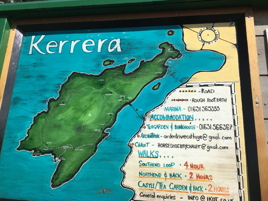We decided, instead, to take the five-minute ferry ride across to Kerrera, one of the islands we could see from the window of our Airbnb, and do some hiking over there.  Kerrera is a small island, seven kilometers long and two kilometers wide and is home to only forty-five people.  To get there, we had to take a ferry from the Gallanach ferry landing, 2.5 miles down the road from Oban. This required a taxi, which we found at the Oban Ferry landing.  On our short ride down to the Kerrera ferry, we chatted up the driver.  We asked if he was from Oban and he told us no, that he was from Hungary.  As we talked, we learned that he had been in Oban for six years. After leaving Hungary he had come to Oban for a short visit, decided that he loved it here, and hasn’t left.