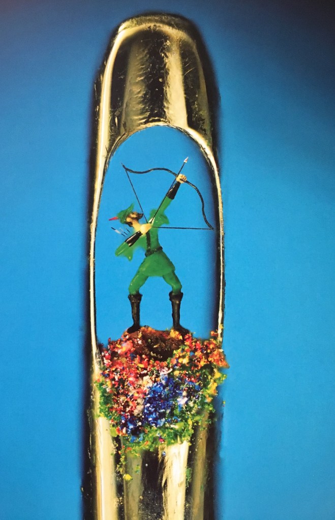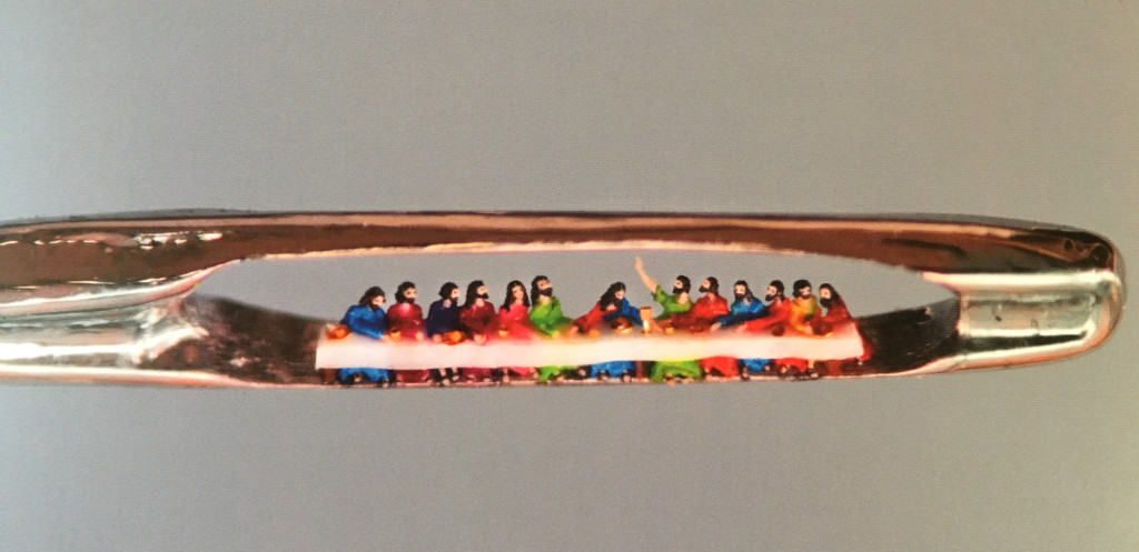 We had lunch in Broadway and, on a stroll down High Street noticed that the town museum has an exhibit of the world’s smallest sculptures – tiny works of art which fit into the eye of a needle or on the head of a pin. If this this sound like the domain of Ripley’s Believe it or Not, it definitely is. Just as we were entering the museum, the artist of the micro-sculptures, Willard Wigan, walked in. The docent in charge introduced us and suggested that Willard tell us a bit about his sculptures. I will not go into Willard’s story, which was fascinating, but a bit lengthy. Well, it was more than a bit lengthy. It was so lengthy I began to be concerned that we not would make our evening dinner reservation and we met him right after lunch. We eventually walked upstairs to see his artwork which is viewed through a series of microscopes – the artworks literally cannot be seen with the naked eye. Willard’s work has to be seen to be believed. He once hollowed out one of his hairs and used it to frame a microscopic bicycle made of gold. Another sculpture is a castle carved from a grain of sand. He has even created 21 angel sculptures that – yep, you guessed it – dance on the head of a pin. Willard has had an audience with the Queen of England and has created a sculpture of her crown as a gift for her. I encourage you to Google him to read his story and view his TED Talk. He is also the subject of a video made for British Television called The World’s Tiniest Masterpieces, which can be downloaded and viewed.