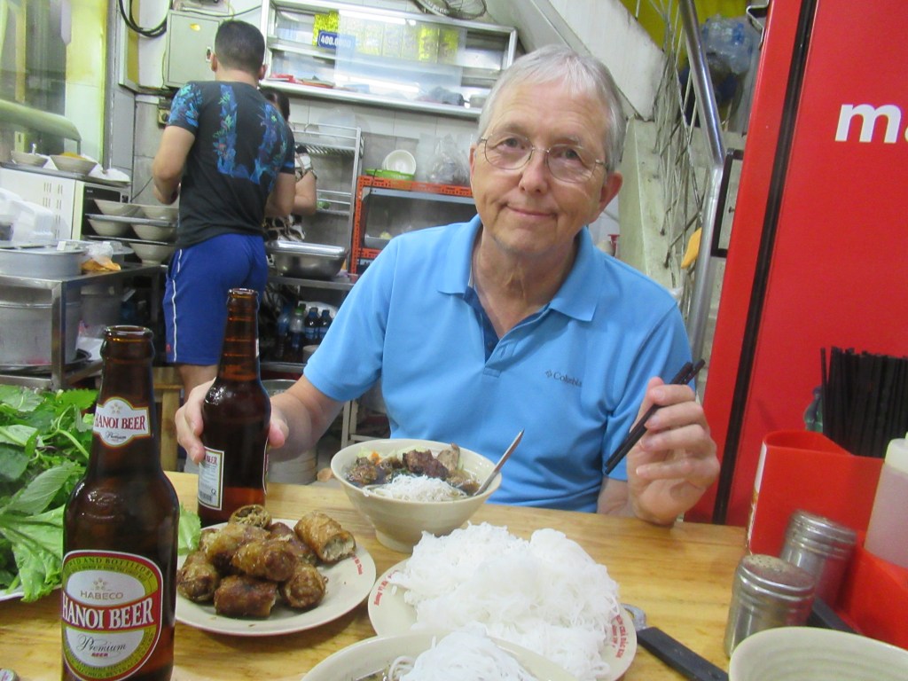 In 2016, Barack Obama and Anthony Bourdain famously shared a meal together at a Bun Cha restaurant in Hanoi. On our last night in Hanoi, we ventured through the chaotic streets of the Old Town at night to try some of the city’s most famous Bun Cha places, Bun Cha Dac Kim, recommended to us by a delightful young couple from Krakow we met on our Halong Bay cruise. I will tell you now, the restaurant that Obama and Bourdain dined in was not in the heart of Old Town Hanoi, which is the New Orleans French Quarter on steroids. It’s busier, noisier, and grittier than the NOLA French Quarter by a long shot. So, it was definitely not the same restaurant that Obama and Bourdain visited because, there is no way the Secret Service would have allowed Obama to venture into a place like the Hanoi Old Town.