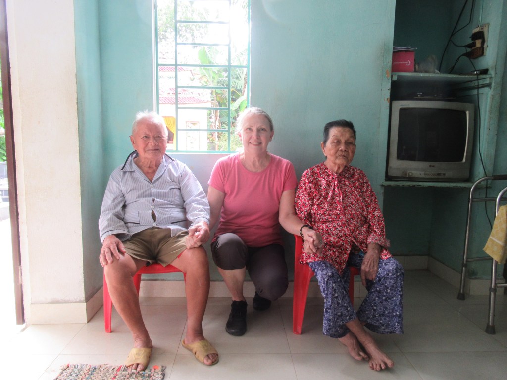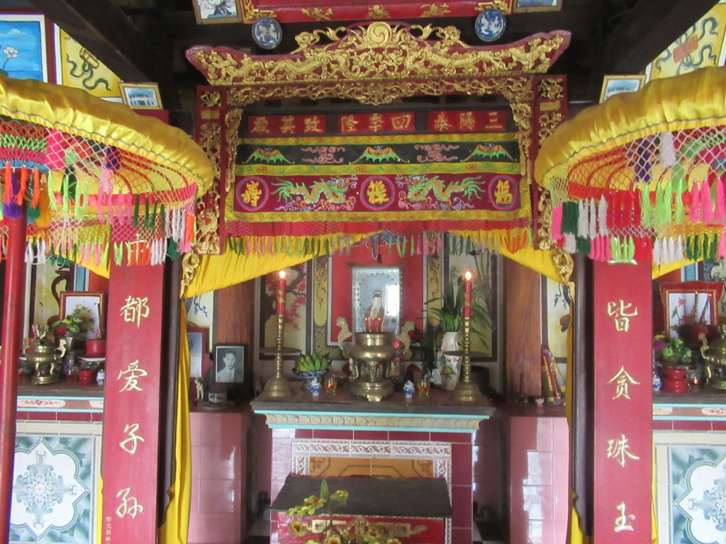 Next we went to visit the Dangs. They are the oldest couple in their village, and also are the keepers of their family chapel. In Vietnam, the majority of people do not belong to a formal religion, but adhere to the teachings of Confucious and engage in worship of their ancestors. The chapel and the family altar are used in this worship.