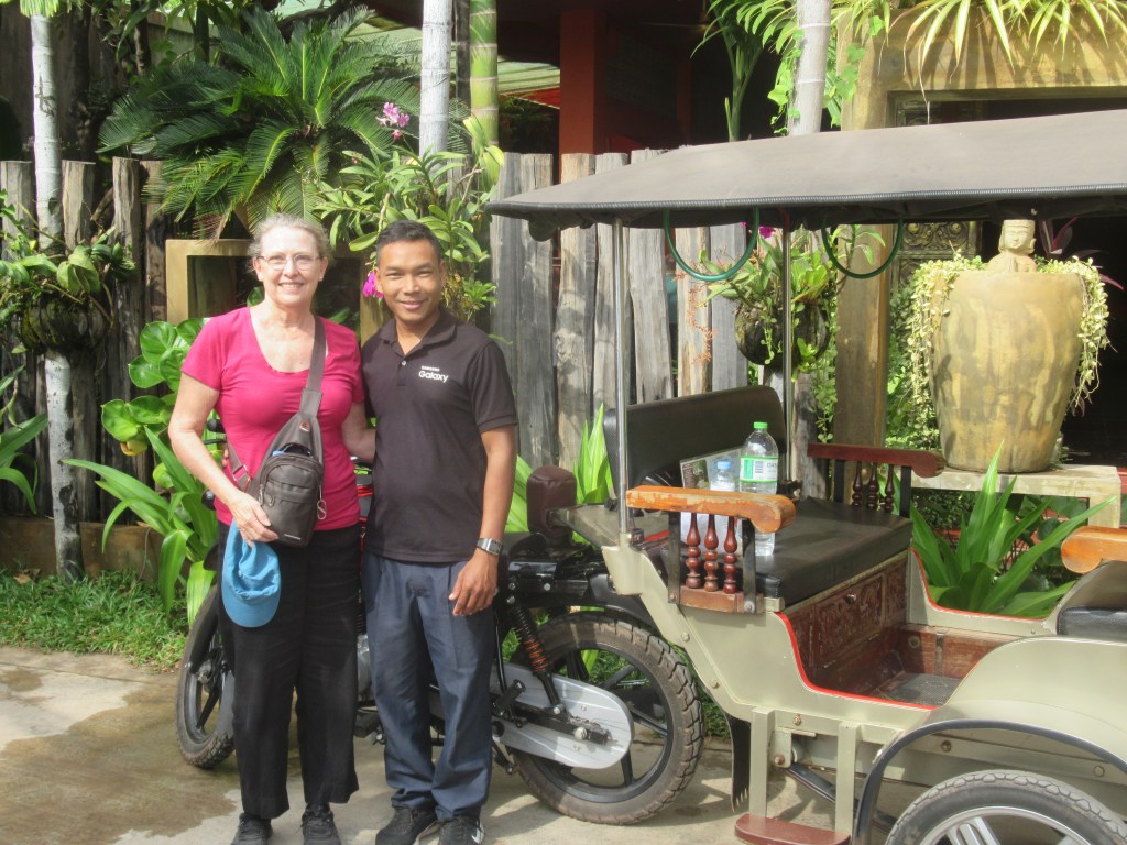 People go to Siem Reap mostly to tour the temples of Angkor Wat, the famous ancient temples that are world-renowned for their beauty and historical importance. The city of Siem Reap itself is a mix of dusty streets lined with cheap hostels and cafes and an upscale section of hotels and fine dining restaurants. We stayed in the Golden Butterfly Villa, a small guest house just off one of the dusty streets. We were awakened at 7:00 sharp each morning to the sound of loud PA announcements from a school just next door. Even if I knew the Cambodian language, I doubt I would have understood much of the lengthy announcements, which had the sound of Charlie Brown’s teacher from the Peanuts specials we grew up with. The guest house itself was staffed with a well-meaning, but slightly inept staff. On check-in, our room was missing towels and other amenities, which we requested and, eventually, received. Later, when we tried to lock our room door to go to dinner, the key didn’t work. We figured out that our room key fit the room across the hall, not our room. We summoned the manager up to our floor to show her the problem and, in her limited English she kept pointing to our room and saying “no one stays in there,” to which we replied, “we stay in there” and she would repeat, “but no one stays there.” This went on for a while. This exchange, we later realized, set the tone for our five nights at the Golden Butterfly Villa. The remainder of the week had multiple comedic misunderstandings around internet service, requesting tuk-tuks, and hotel amentities. But what can you say? This is a small villa in a country that is developing rapidly but is still behind its Southeast Asia neighbors.