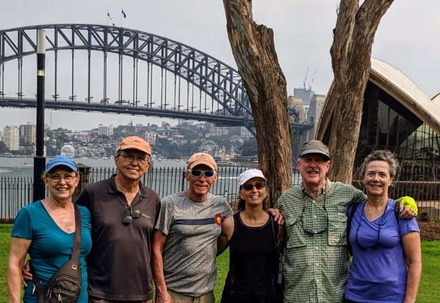 In our time in Sydney, we took the train up for a day trip to the Blue Mountains, had a drink at The Wild Rover, one of Sydney’s ‘secret bars’ where we were, by far, the oldest people there. We visited the Royal Botanical Garden several times, haunted the trendy Surry Hills neighborhood, stayed in a house in the historic section called ‘The Rocks,’ went to Darling Harbor to see the aquarium and fish market, took the ferry to Manly Beach one day and to the Taronga Zoo on another day, with its fascinating collection of animals and panoramic view across the water of the Sydney skyline. We visited the New South Wales Gallery and enjoyed their collection of Aboriginal cultural art and artifacts. For part of the time, we were joined by my sister, Mary Helen, and her travel pal, Connie, and we also serendipitously caught up with Kim and Scott, friends we made a couple of years ago on a five-day bike ride in Wisconsin’s Door County. They, in turn, introduced us to their friends, Matt and Kirin. In short, we had a wonderful time and did so many things in Sydney.