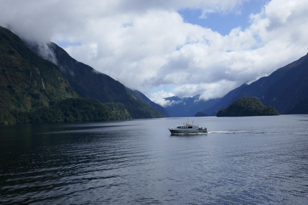 On to Te Anau, a little hamlet that is south of Queenstown. Most of Fjiordlands National Park is so remote and mountainous, it is only possible to see by taking a cruise through a fjiord. The most popular cruise on offer is the Milford Sound cruise, however, it was just opening up after storms washed the roads there out a few weeks ago. We opted, instead, to take the Doubtful Sound cruise. Doubtful is larger than Milford and more difficult to get to and, in addition, offers scenery that is beautiful but less dramatic than Milford, hence the lower popularity. We enjoyed the cruise in Doubtful and had a wonderful day. On the way back, our driver told us that the Doubtful Sound cruises had started in the 1950s and, in the early days required cruisers to take a one day hike to and from the harbor to take the cruise. Since then, tourism in general, and popularity of these cruises has made them a staple of activities on the South Island.