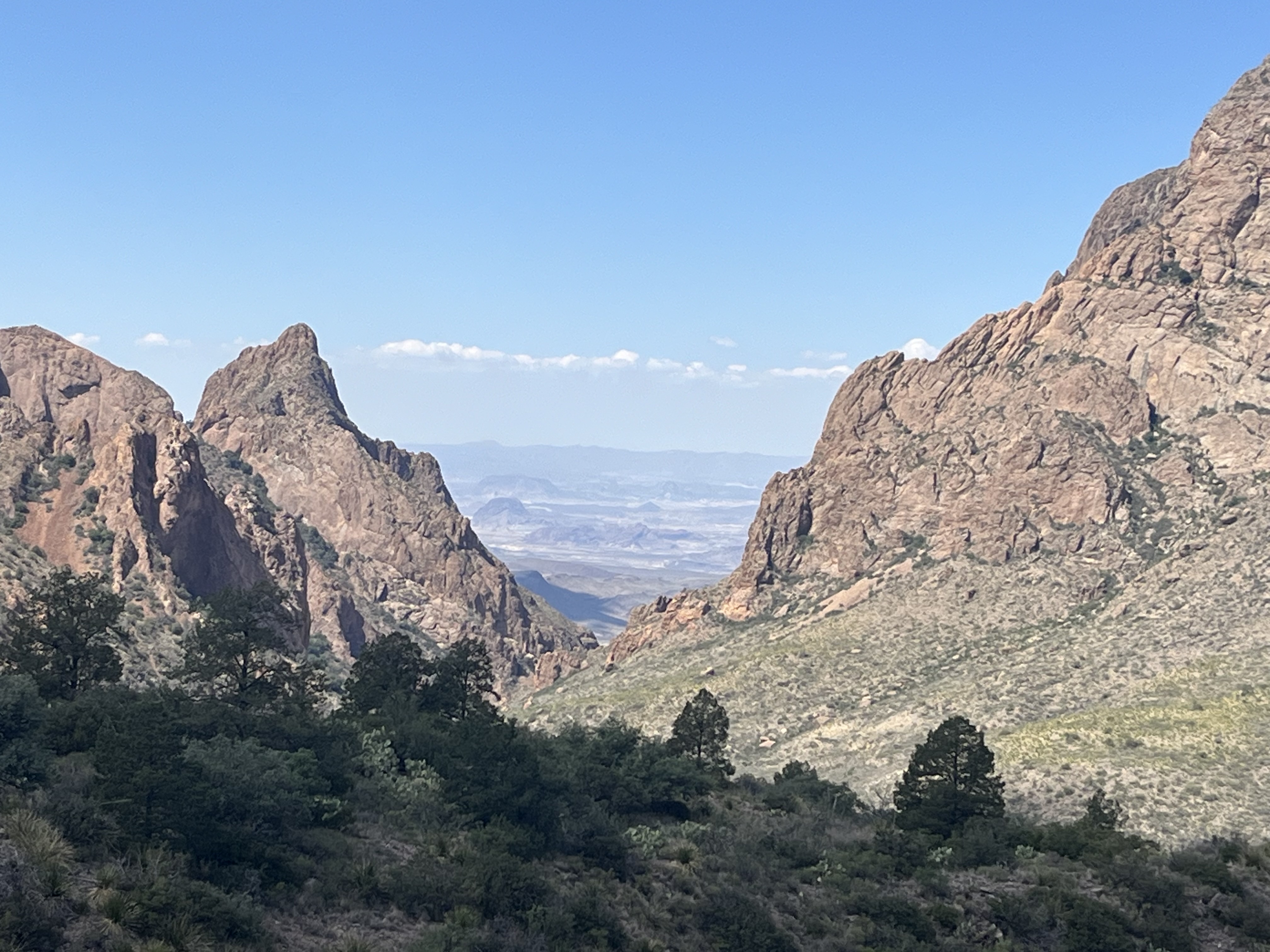 In our second day at Big Bend, we drove to the Chisos Mountains area of the park to hike the popular Lost Mine Trail. Although it’s only around five miles round-trip, there is an elevation gain of 1,100 feet. The summit offers sweeping views at the top, reachable by navigating rugged terrain. The name of the trail goes back to a legend of Spanish explorers who enslaved the local people to mine silver in the area. According to legend, the workers rebelled, killed the Spanish, and sealed the mine entrance. However, there is no evidence to support this legend and geologists don’t believe silver would form in the Chisos Mountains. In fact, the trail was built in the 1930s by the Civilian Conservation Corps (CCC). After our hike, we wandered about the Chisos Mountains Lodge, ate lunch at the restaurant there, and enjoyed the view from the short, paved Window View Trail. While we enjoyed our time in the Chisos Mountains area of the park, the Chisos Mountains Lodge and restaurant are nothing special and we were happy that we had landed in Terlingua, a town with quite a lot of character.