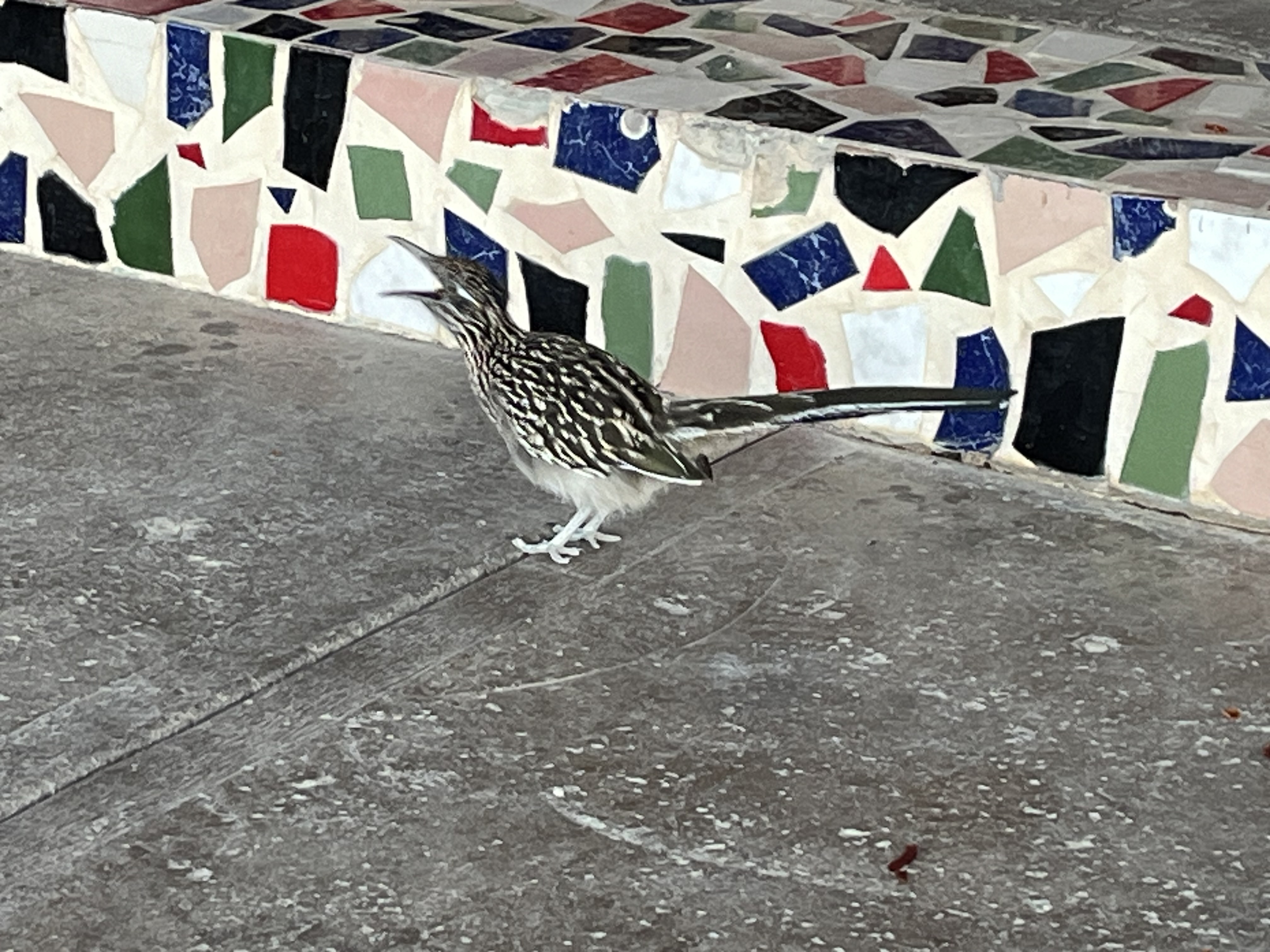 The next morning we awoke rested and happy to see our beautiful surroundings in the desert. We headed down to the Terlingua Ghost Town area, which is five minutes down the road. This is the old town of Terlingua, which is now a small entertainment district with restaurants and a modest hotel. It is the home of the world’s first chili cookoff, which was founded in 1967 and which still convenes annually in early November. We found a delightful little outdoor place for breakfast that served us delicious breakfast tacos and were surprised to see that the scavenger birds hanging around for our breakfast crumbs were not the usual sparrows or pigeons, but were roadrunners!