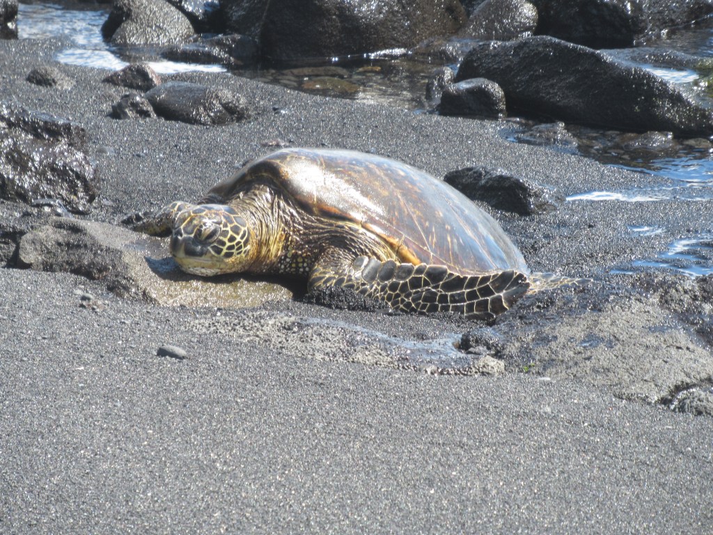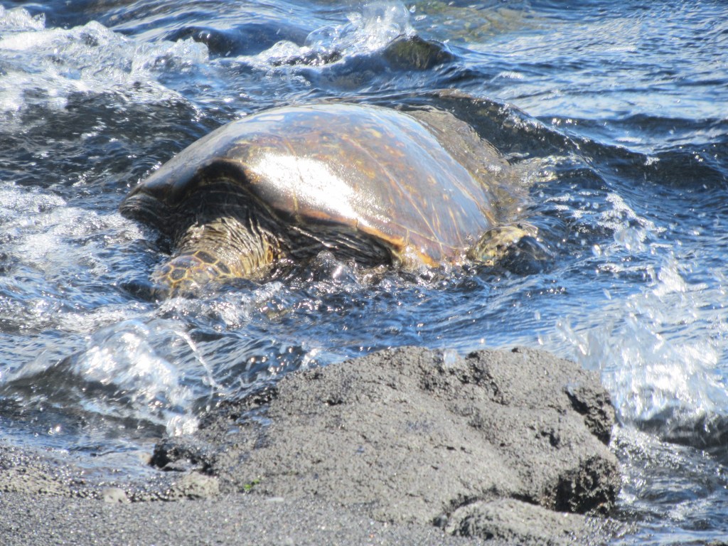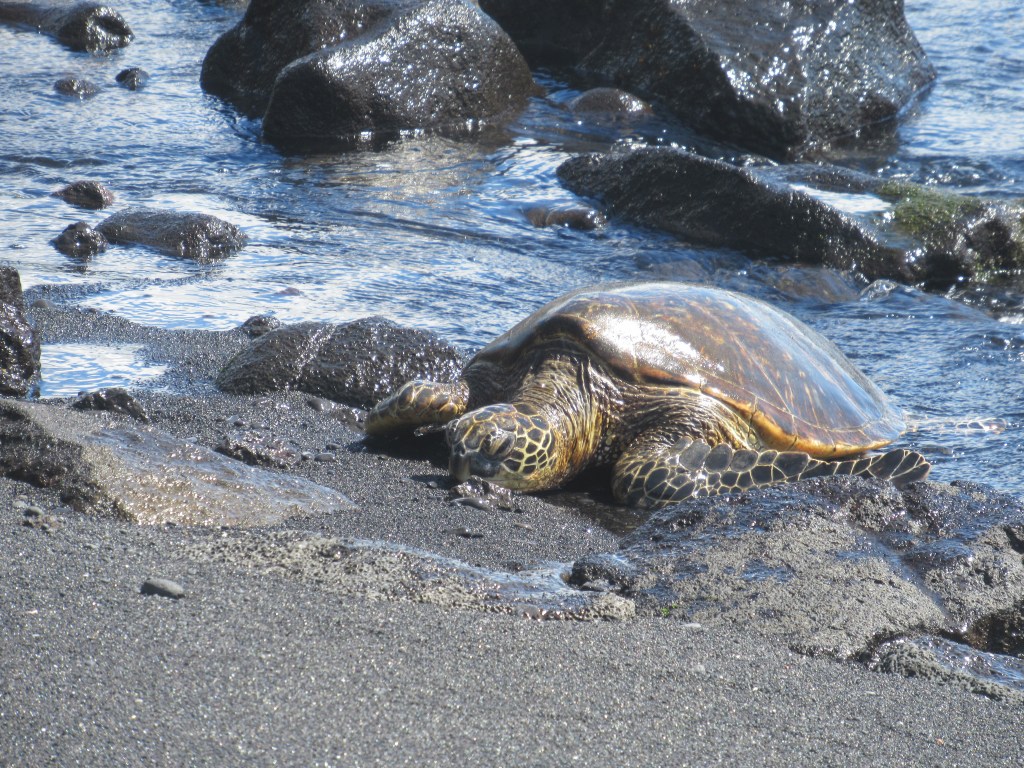 Watching a turtle at Punaluʻu Black Sand Beach: Of all of our adventures in Hawai’i, seeing a turtle crawl onto a black sand beach was a real standout. Black sand beaches exist in other parts of the world, but this one, with its rocky shore, framed by the sapphire blue water is absolutely stunning. Getting to see a sea turtle emerge from the water and make its laborious way up the sand was the icing on the cake.