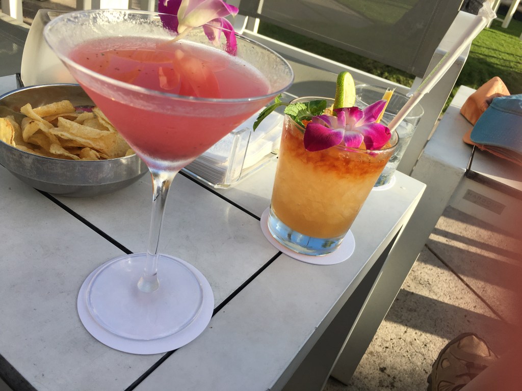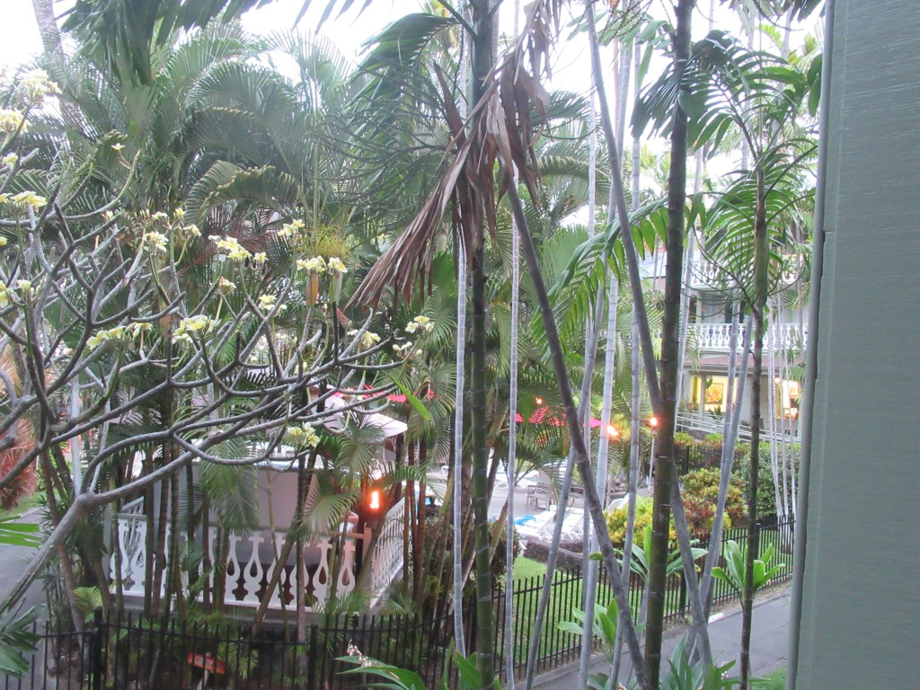 Hawaiian entertainment: Our travel is generally heavy on hiking and physical activity, instigated by me, and also heavy on culture and history, John’s main interest. So, I sheepishly asked John if we could possibly do something different while we were staying on Waikiki Beach. Something that was an all-on tourist experience with Hawaiian music, hula dancers, and drinks garnished with tropical flowers. He was perfectly agreeable, so, late one beautiful afternoon, we made our way to a posh waterfront hotel, and settled in with festive drinks in hand and an excellent view of Diamondhead. Anticipation rose as the band of local performers, decked out in leis, performed sound checks and tuned up instruments while the hula girls arrived. And then, just as the fun was about to start, a rogue cloud passed right over us and dropped a downpour, drenching us and our drinks, and shutting down the entertainment. First the USS Arizona, now at our touristy interlude. Were the gods speaking to us?